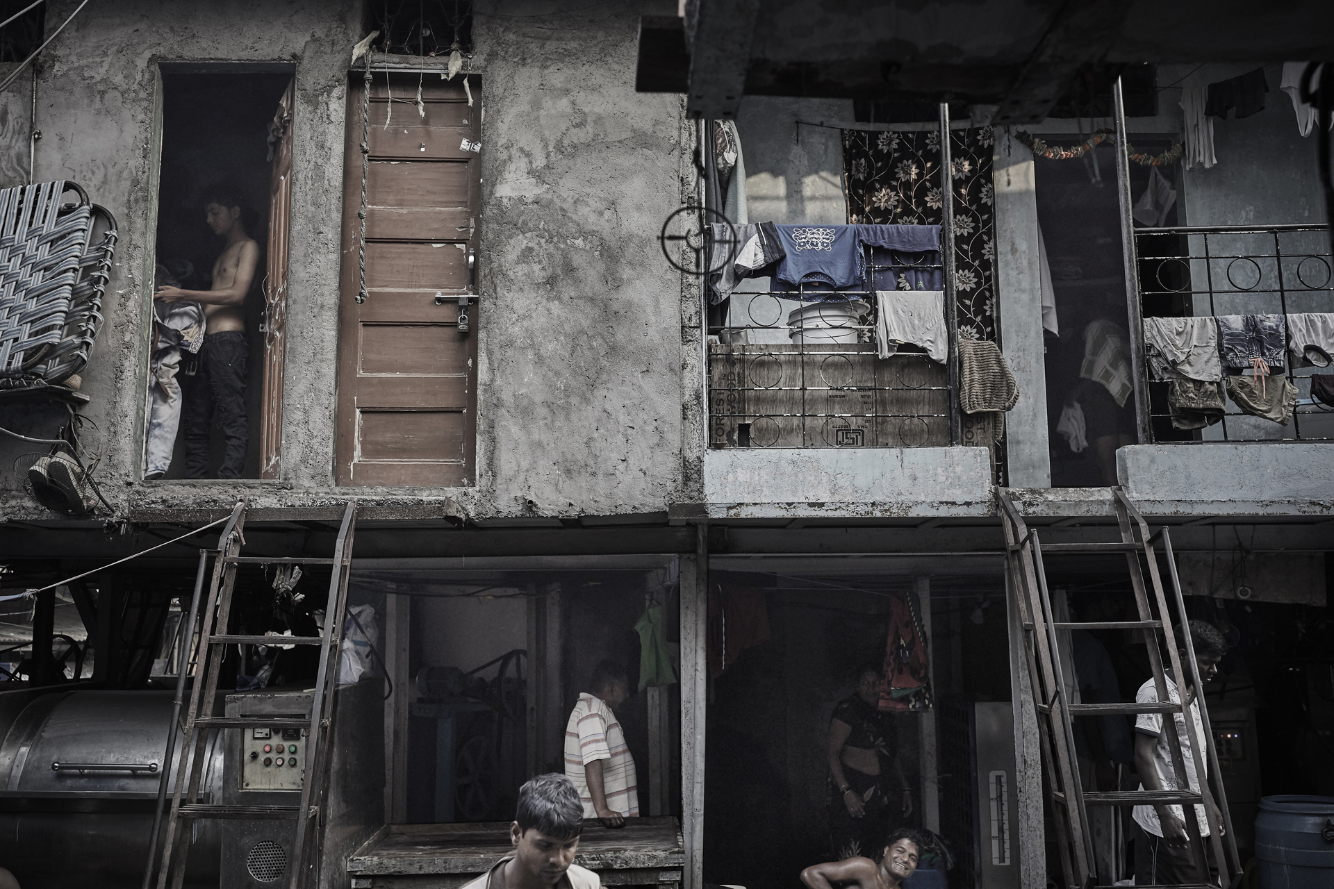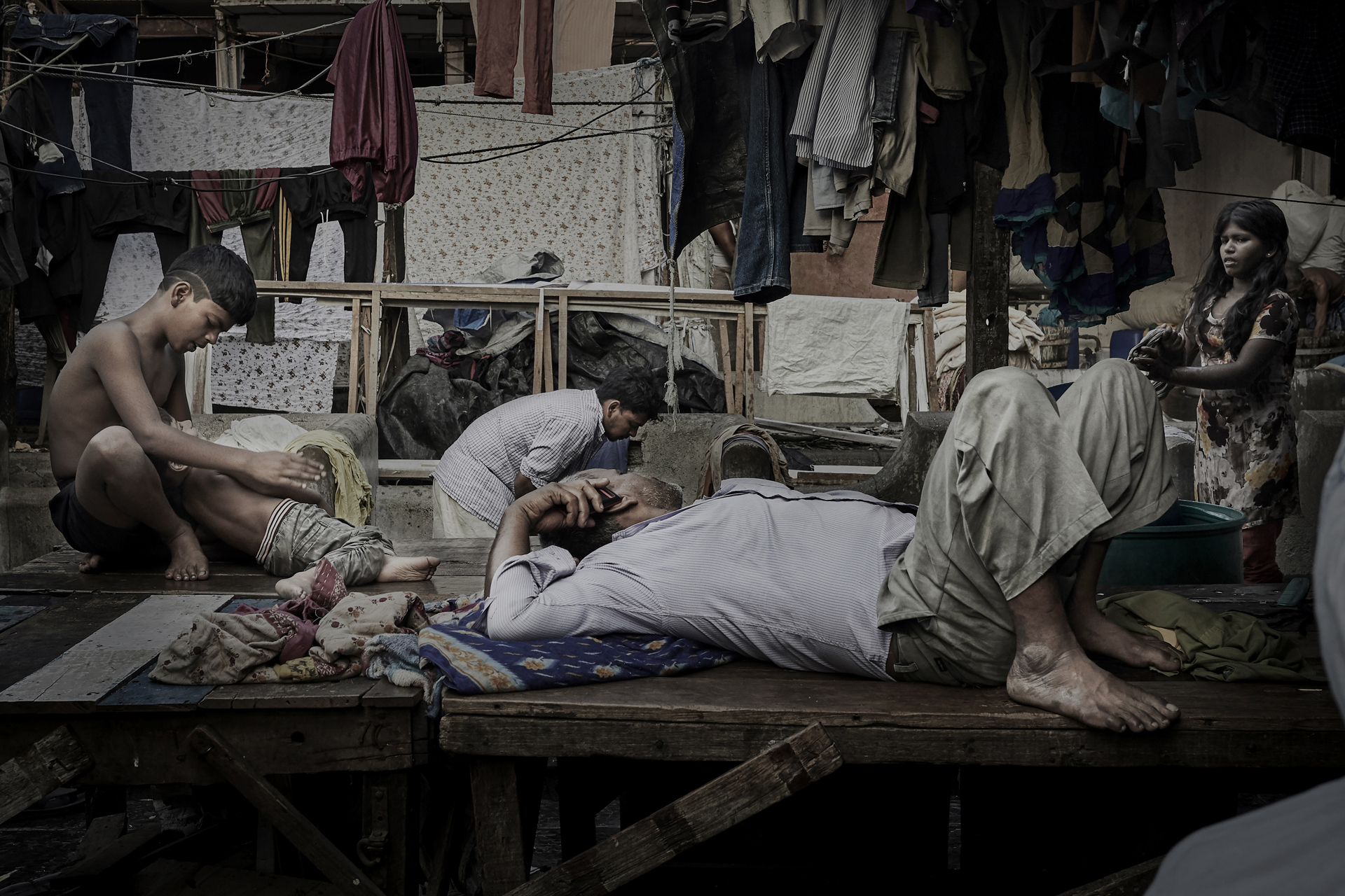 他们没有多数人思想中的家,但有家人与家园,这块污水横流的土地就是他们的家园。因为私密空间有限,有时家人只能分时段休息。空气中弥漫着令人难以忍受的气味,警惕的双眸中充满着无法描述的麻木和渴望。孟买大约有2000个合法的贫民窟,有千万人工作、生活在这里。在城市的孤岛上,许多人从生到死一直没有离开过。